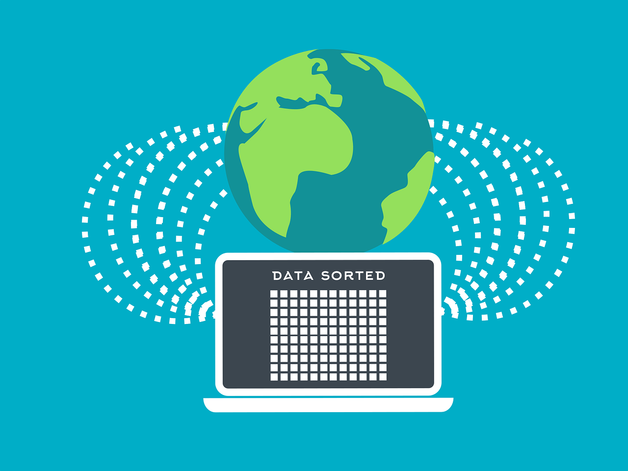 Ein Mensch der auf einem WLAN-Zeichen sitzt und aus einem Laptop eine Kreditkarte angelt.