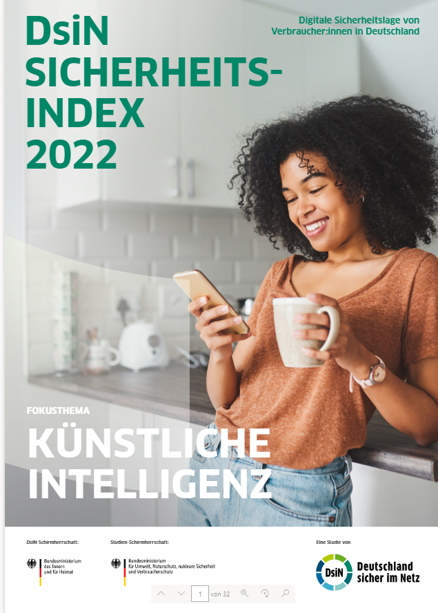 Der DsiN-Sicherheitsindex von Deutschland sicher im Netz e. V. untersucht die digitale Sicherheitslage von Internetnutzer:innen in Deutschland und bildet diese in einer zentralen Kennziffer auf einer Skala von 0 bis 100 Punkten ab. Hierzu werden vier Sicherheitsfaktoren genauer untersucht: erlebte Sicherheitsvorfälle sowie das Verunsicherungsgefühl der Verbraucher:innen beschreiben die Bedrohungslage. Das Sicherheitswissen und Sicherheitsverhalten von Verbraucher:innen ergeben das Schutzniveau.