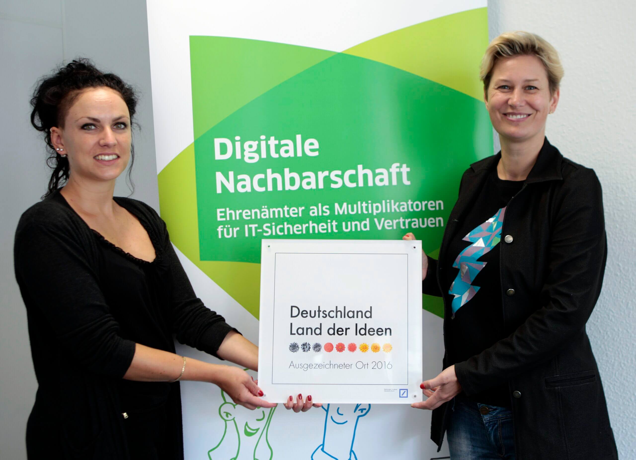 Berlin, 30. Juni 2016. Die Freude bei allen Partnern und Unterstützern von Deutschland sicher im Netz e.V. ist groß. Das DsiN-Projekt Digitale Nachbarschaft – Ehrenamtliche für mehr Sicherheit im Internet wurde als „Ausgezeichneter Ort“ im Wettbewerb Deutschland – Land der Ideen geehrt. Das Motto des diesjährigen Wettbewerbs lautet NachbarschafftInnovation – Gemeinschaft als Erfolgsmodell.