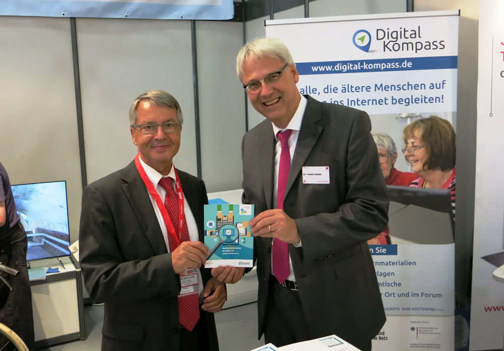 Der Digital-Kompass (www.digital-kompass.de) ist vom 2. bis 7. September auf der IFA am Gemeinschaftsstand der BAGSO und des Deutschen Blinden- und Sehbehindertenverband vertreten (Halle 6.2 / Stand 113).